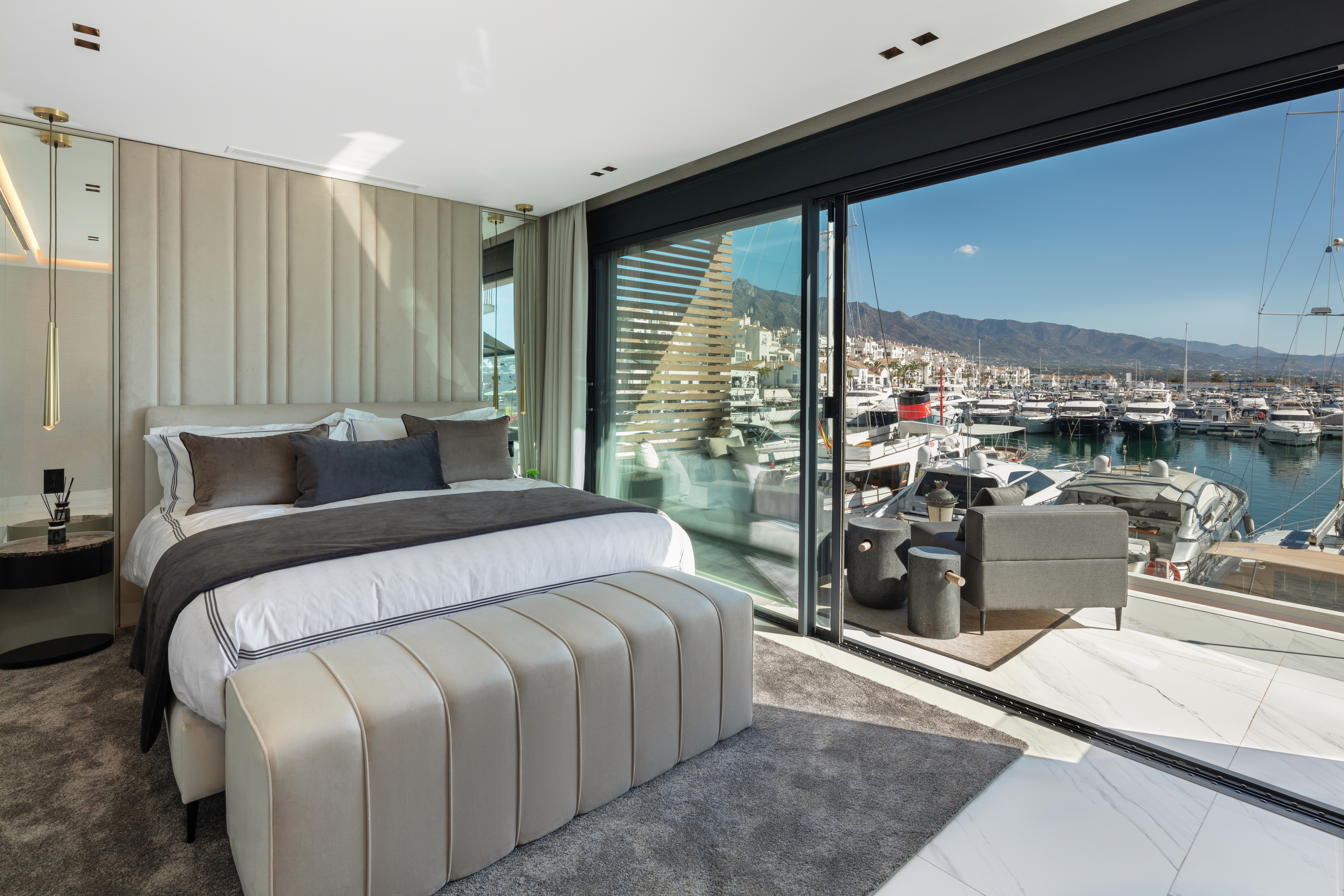 A sleek contemporary apartment located within the famous Puerto Banus Marina, showcasing jetliner panoramic views to the Mediterranean Sea and harbour. Experience luxurious coastal living in Puerto Banus, with endless designer stores, avant-garde restaurants and luxury leisure activities to enjoy under the spectacular Marbella climate. Recently renovated with the highest qualities and complemented with refined contemporary design, each division has been maximised to its full potential and ensures that the distinguishable features are the magnificent panoramic sea and port views. Throughout the property discover top-of-the-line features such as an open plan living with almond wood panelling incorporated LED lighting, leading directly to the exterior terrace with frontline views towards the port, a sleek fitted kitchen complete with top-level Gaggenau appliances and 3 opulent bedrooms, each with their own en-suite bathrooms. Discover a lavish apartment with all the best Marbella has to offer at your fingertips.