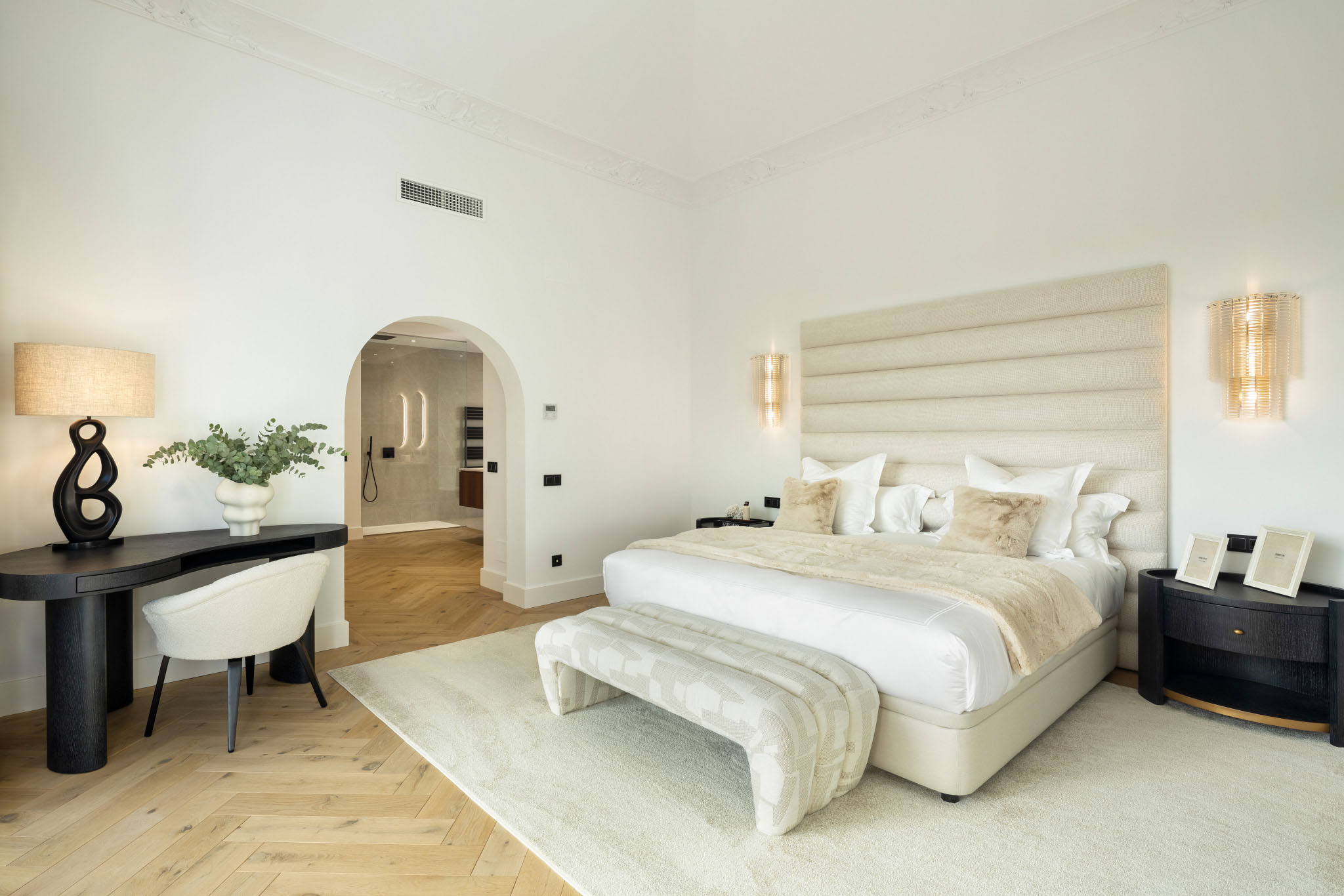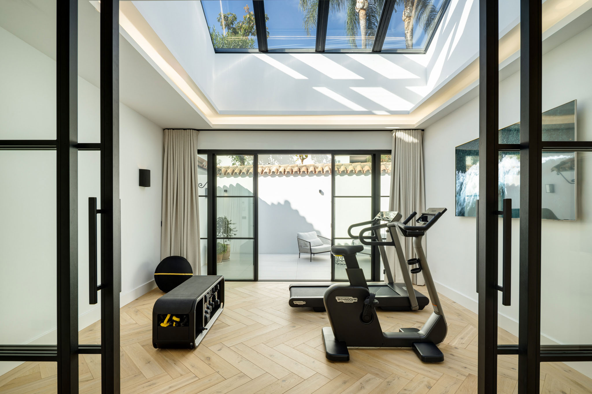 VILLA SKYFALL - GOLF FRONT 5-BEDROOM VILLA IN EL HERROJO, LA QUINTAVilla Skyfall is an exceptional villa for sale in the prestigious gated community of El Herrojo Alto, one of LaQuinta’s most sought-after residential areas. Positioned on an elevated frontline golf plot, this landmarkproperty harmoniously blends timeless Andalusian architecture with modern design, offering panoramicviews across the La Quinta Golf Course toward the iconic La Concha mountain.The interior design and qualities of this brand new renovated property are nothing short of exceptional andstand as a refined statement of contemporary Mediterranean living.Spread across two levels and connected by a glass passenger lift, the residence ensures both comfort andfull accessibility.