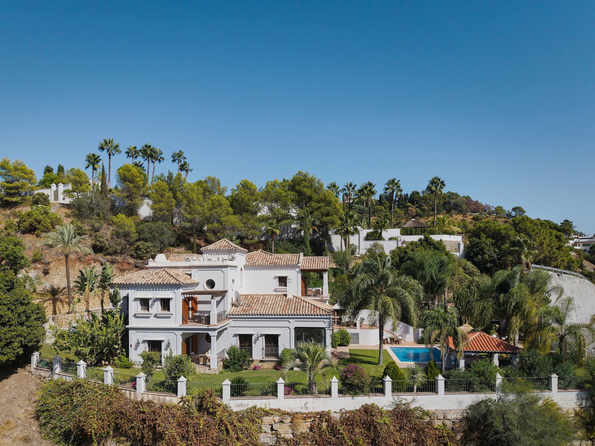 Villa Las Palmeras presents a distinguished opportunity to own a luxury residence within the coveted gated community of El Madroñal in Benahavis. Blending timeless Madroñal charm with contemporary updates, this expansive villa offers 531 square meters of built space over two thoughtfully designed floors, perfectly tailored for those who value privacy,panoramic views, and a harmonious blend of indoor and outdoor living. Completed with a significant renovation in 2024, this home is ready to offer an elevated standard of life in one of the Costa del Sol’s most secure and prestigious enclaves.
